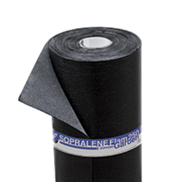 Membrane composed of elastomer modified bitumen with root-repellent additives and a non woven polyester reinforcement. Used as an upper layer within a multi layer waterproofing system for green roofs. The upper surface is finished with slates and the overlap is protected by a thermofusible film. The lower surface is protected by a thermofusible film.
