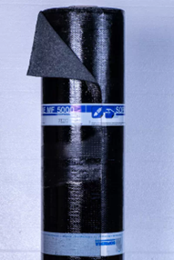 Membrane composed of elastomer modified bitumen with fire retardant additives and a composite polyester reinforcement. Used as an upper layer within a single or multi layer waterproofing system where fire retardant properties are required. The upper surface is finished with slates and the overlap is protected by a thermofusible film. The lower surface is protected by a thermofusible film.