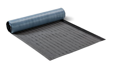 Self-adhesive membrane with a vapour-pressure and tension dispersion system, composed of elastomer modified bitumen and a composite polyester reinforcement. Used as a base layer within a multi layer waterproofing system on surfaces where partial adhesion is required. The upper surface is finished with talcum/sand. The lower surface is provided with self-adhesive bitumen stripes alternated with non-stick stripes protected by a silicone release film. The overlap is partly self-adhesive (to prevent flame transmission) and partly torchable with flame or hot air.