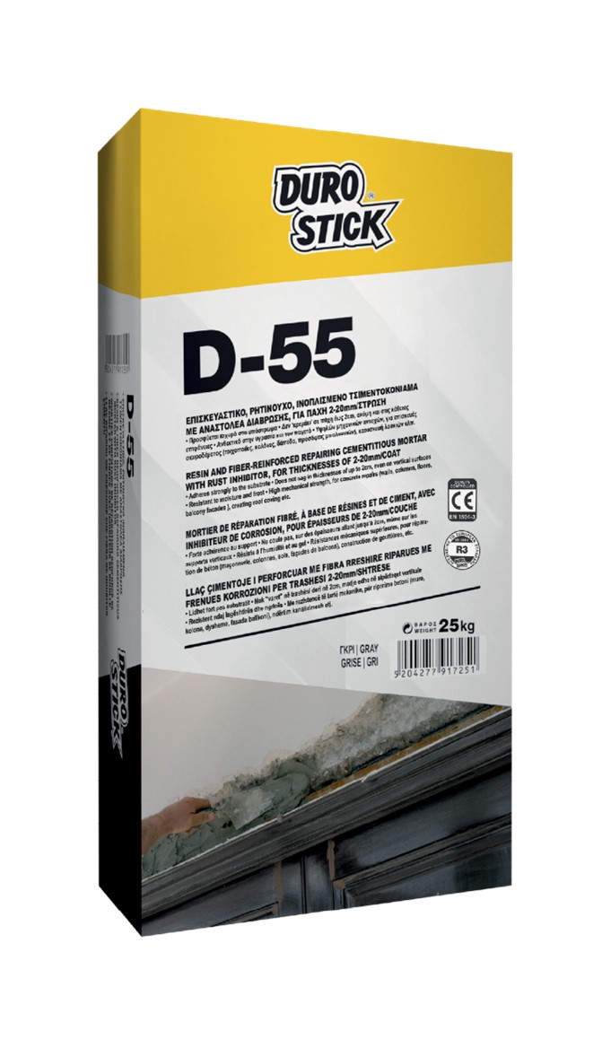 D-55 is a repair mortar with high mechanical strength, for thin coats of 2-20mm/coat.