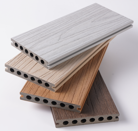 WPC decking combined the advantage of plastic and beauty of wood, make you feel very comfortable especially barefoot on it. Excellent anti-slip give you more safety and enjoy your life. The surface nearly to natural wood and beautiful appearance, rich colors suitable for varieties of decorate solutions. 360º comprehensive coating, thickened protective layer, better waterproof and anticorrosive performance. The anti-aging performance of the surface layer is highest anti-aging material of BASF UK235 in German, which has better weather resistance.