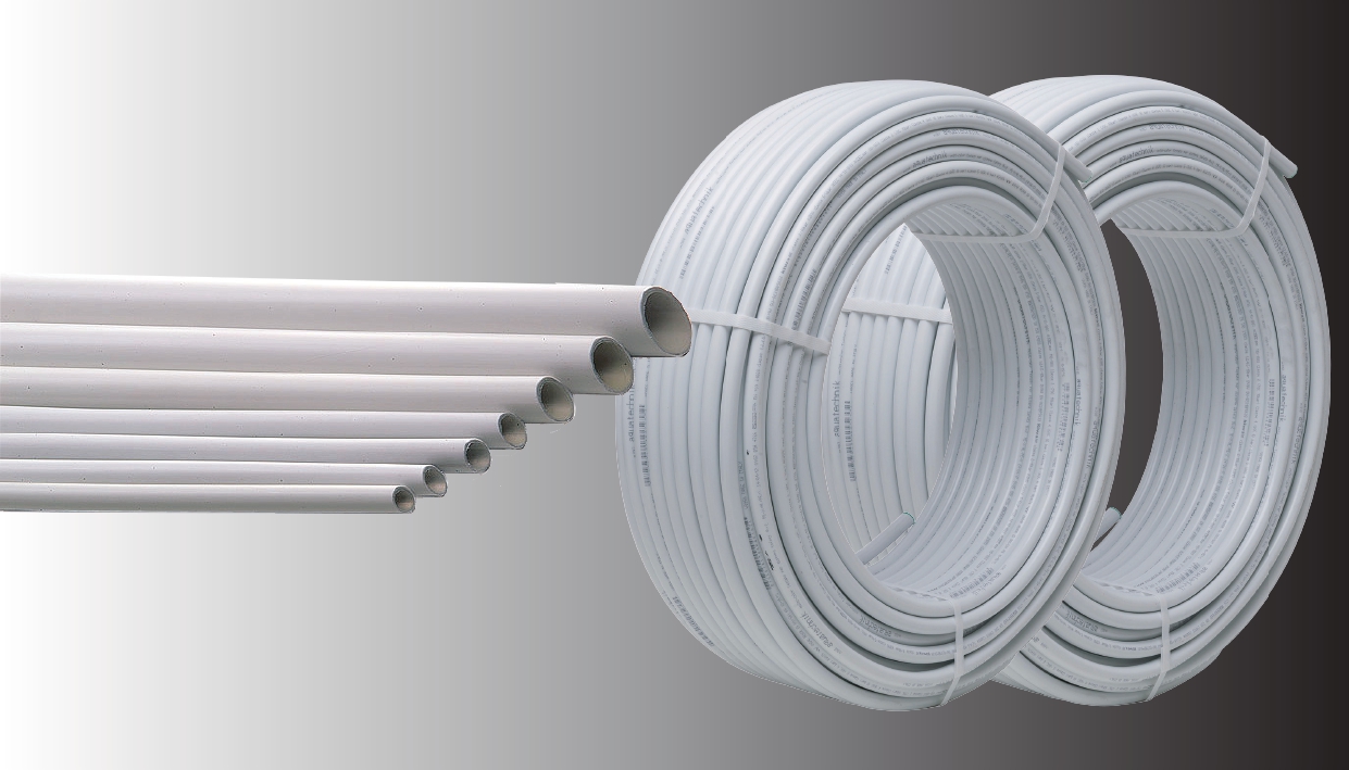 Multilayer pipes (5-layer piping in PE-Xb, adhesive, aluminium, adhesive and PE-Xb) for sanitary, heating, air conditioning and compressed air systems. For open laid exposed and concealed applications.