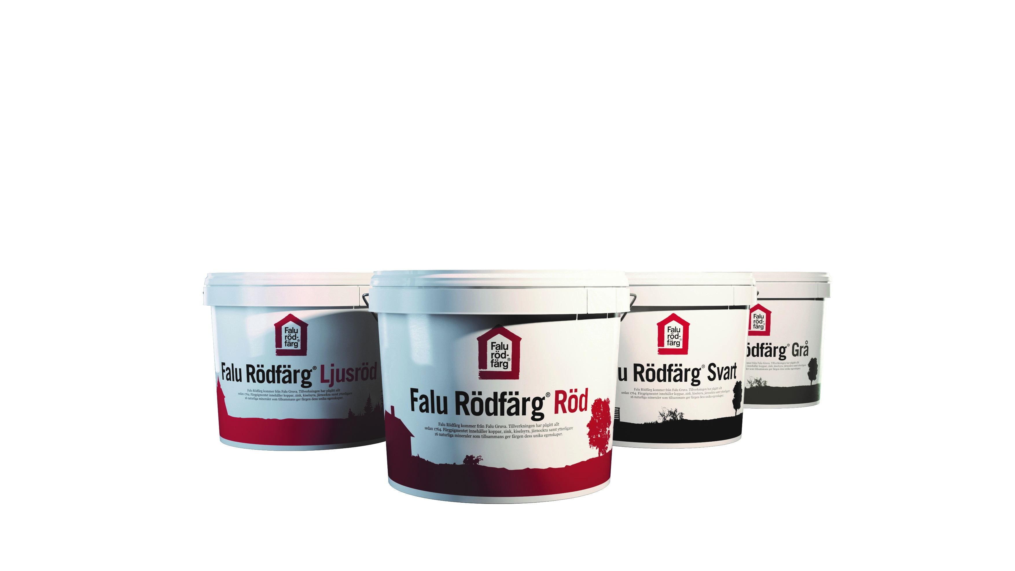 Falu Rödfärg Original, sludgepaint for exterior wooden surfaces, red, black, light red and grey colours
