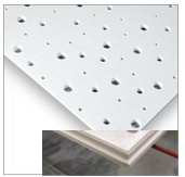 Rigitone® Edge Activ’Air® is a gypsum-based plasterboard with specially designed acoustic and aesthetics features (non-woven black facing, hole pattern) for use in Gyproc ceiling and where greater levels of sound insulation is required.