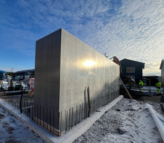 Concrete casting panel is a sandwich panel composed of CFRT (continuous glass fibre reinforced thermoplastic) as reinforced surface layers and PP (polypropylene) hollow plastic board as a core. The reinforced surface layer is made of double-layer continuous glass fibre reinforced thermoplastic unidirectional prepreg tapes (UD-tape) at an angle of 0°and 90°.