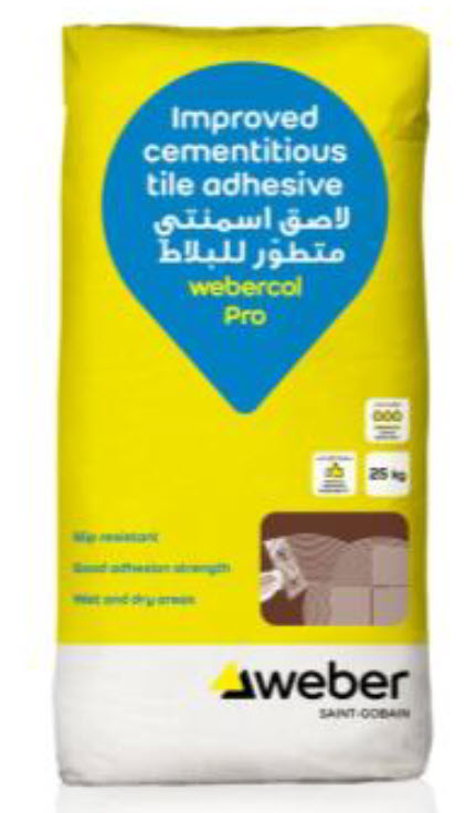Webercol pro is a ready mix cement-based tile adhesivemodified with redispersible polymer for internal walls andfloors as well as external floors.