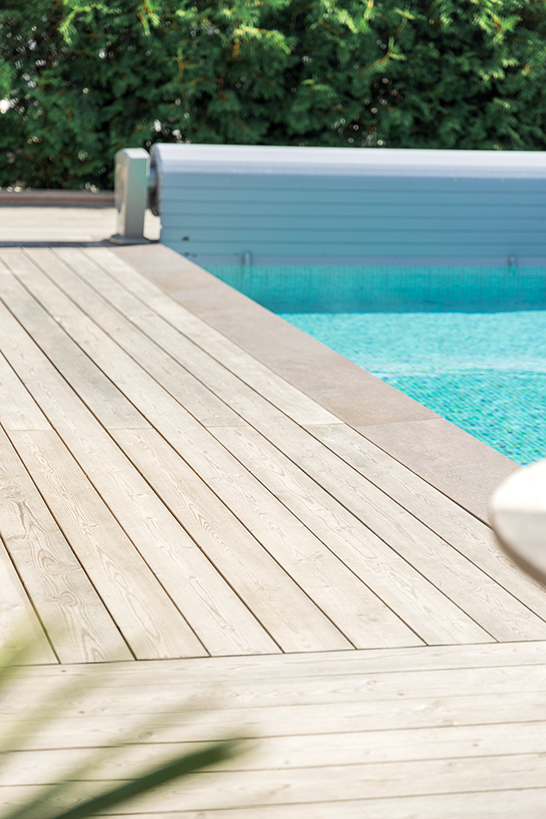 OrganoWood® is particularly suited for modification of pine and spruce. Pine is traditionally used for decking and structures and spruce for cladding.