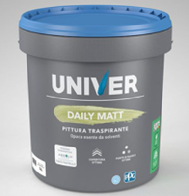 DAILY MATT: Water-based paint for interiors with low environmental impact with good white index and washability class 3 according to EN 13300. Suitable for plasters, premixed, plaster and plasterboard surfaces. The product is in class A+ according the Granelle II. Dead matt aspect. White - Other colors reproducible with the ABSOLU SYSTEM tinting system (pastel tint)