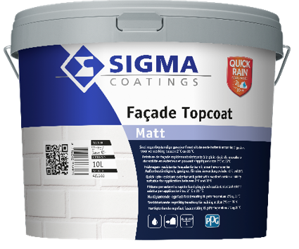 Sigma Facade Topcoat Matt is a quick rain-resistant exterior wall paint with excellent outdoor durability, suitable for application between 2°C and 35°C.