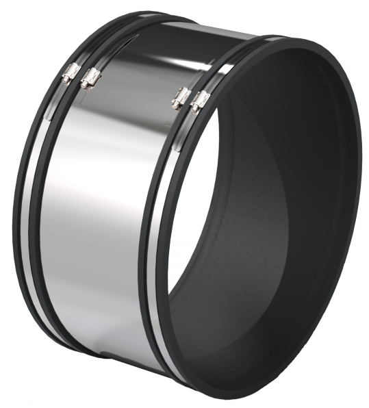 Shear banded couplings are specifically designed to connect and repair pipes on sewer and drainage applications. The stainless steel central band protects the joint under shear loads and helps to keep the joining pipes aligned, helping to prevent pipe displacement.