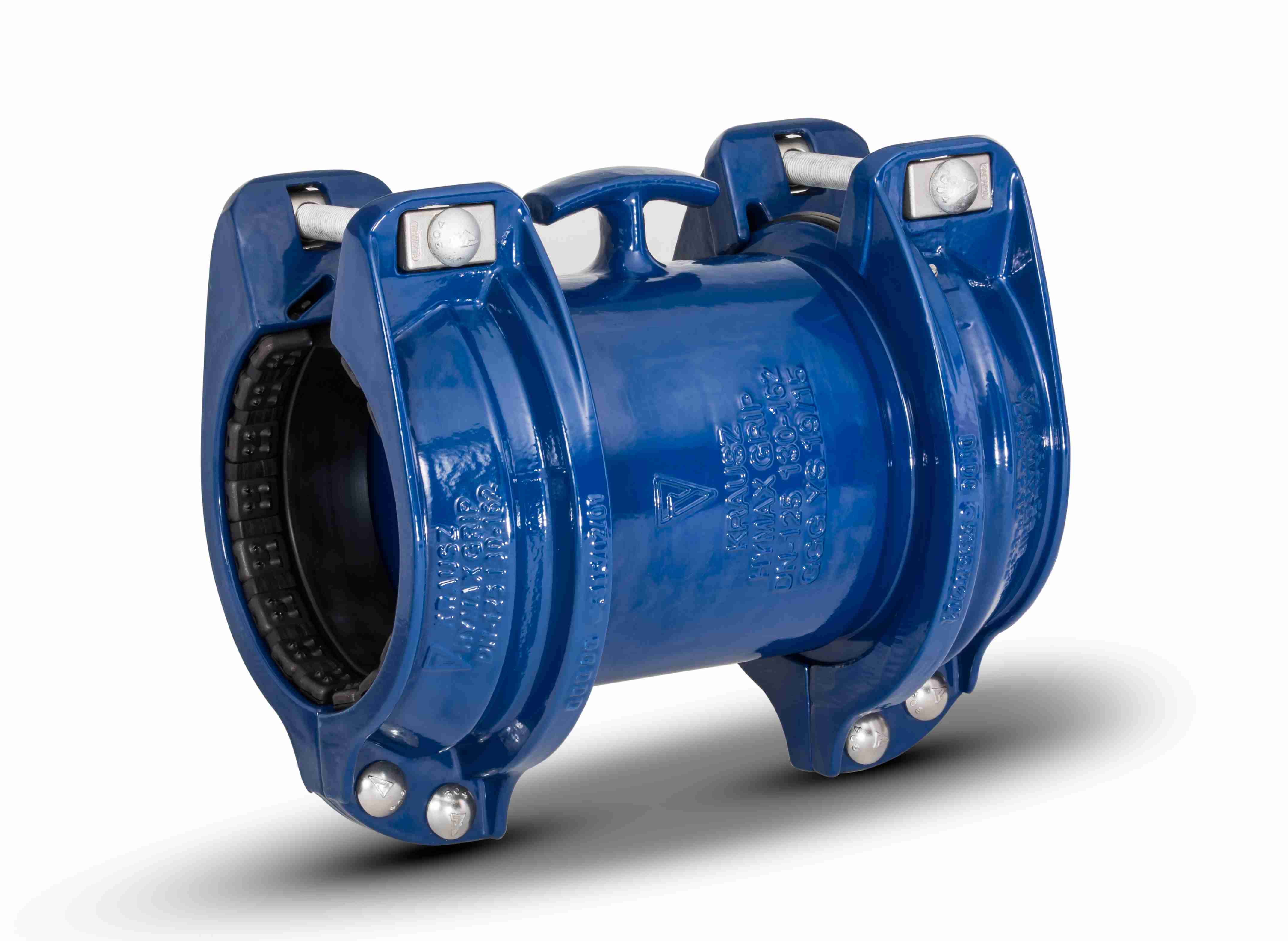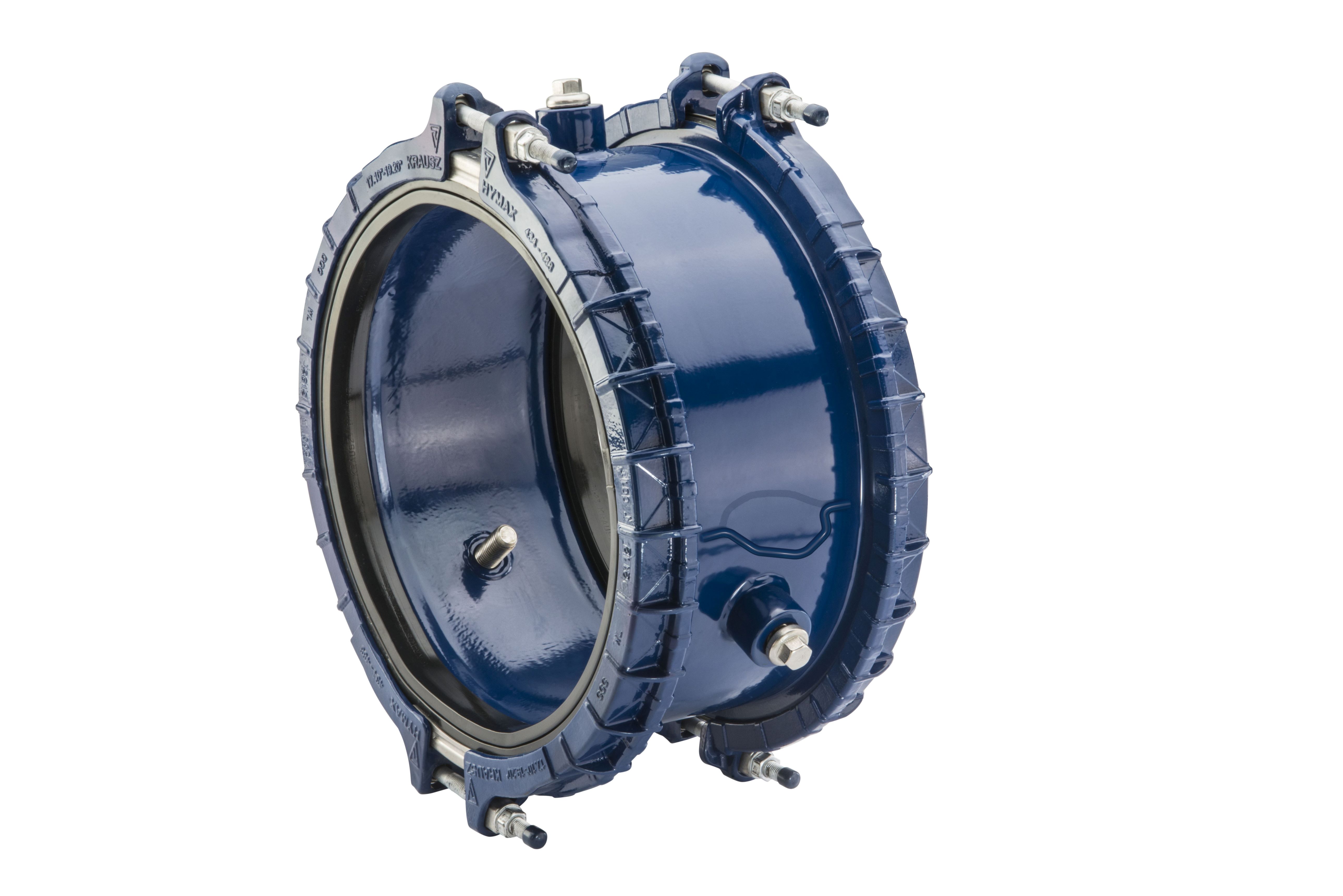 HYMAX Grip (DN 40-300) and HYMAX Grip Large (DN 350-400) reliably joins and restrains a wide range of piping types and diameters. Its patented design allows the joining of pipes of the same or different materials and same diameters.