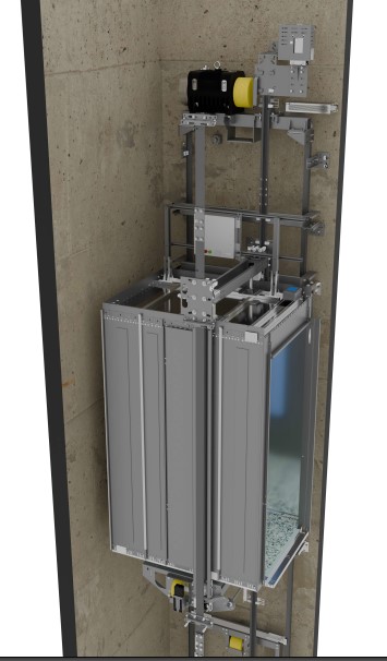 Electric machine roomless traction lift with gearless technology, permanent magnets synchronous motor and VVVF control.