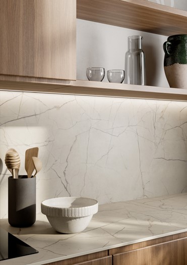 Formica Aria® 12mm surfaces are high-pressure compact laminates designed for kitchen worktops, breakfast bars, splashbacks and upstands. These laminates consist of layers of natural fibers treated with thermosetting resins and feature surface layers on both sides. The materials are bonded using heat and high pressure, creating a homogeneous, non-porous material with increased density and integral decorative surface.