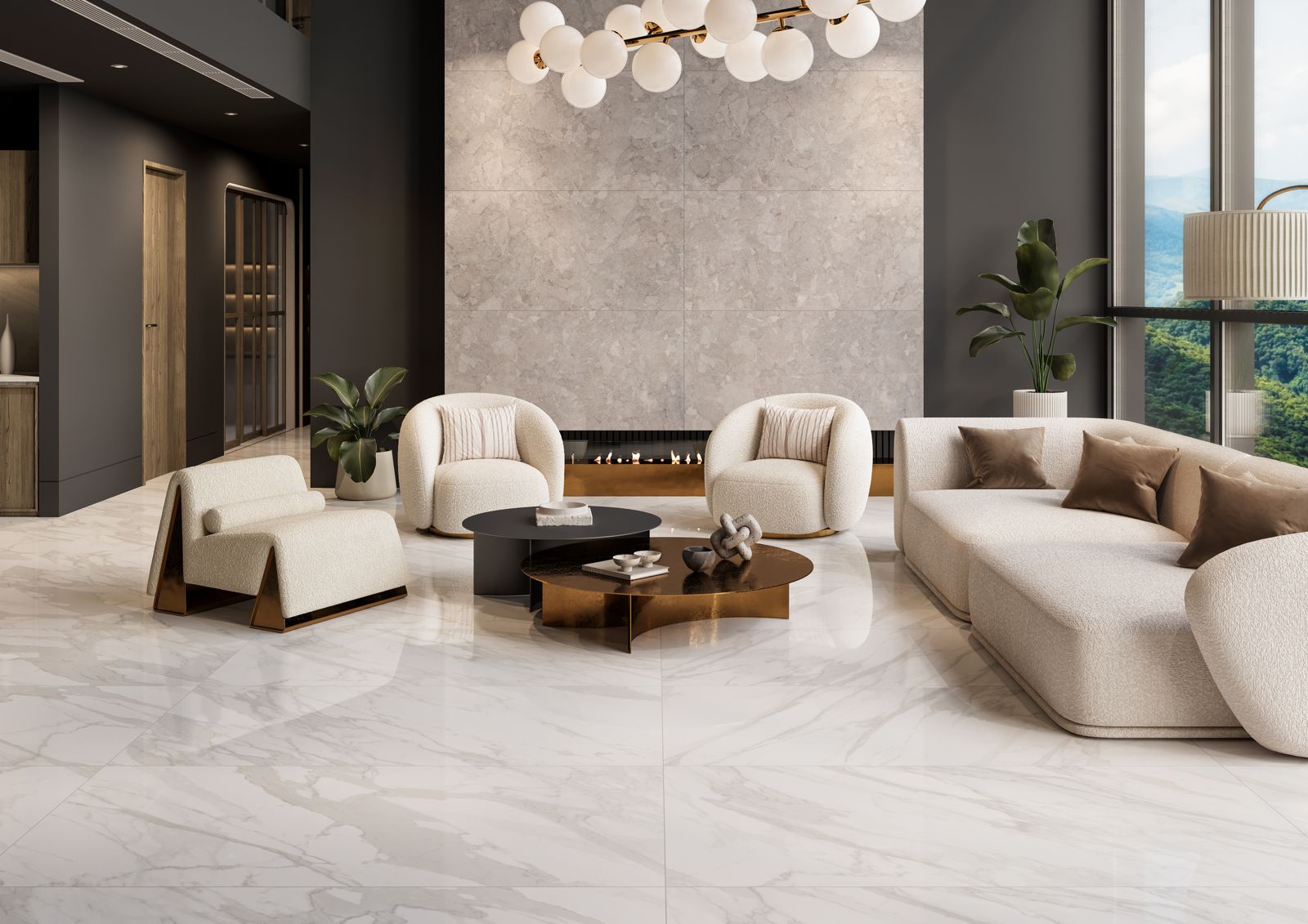 Porcelain floors used to cover surfaces (floors and walls) with an average weight of 21.5 kg/m2 and a duration of 50 years..
