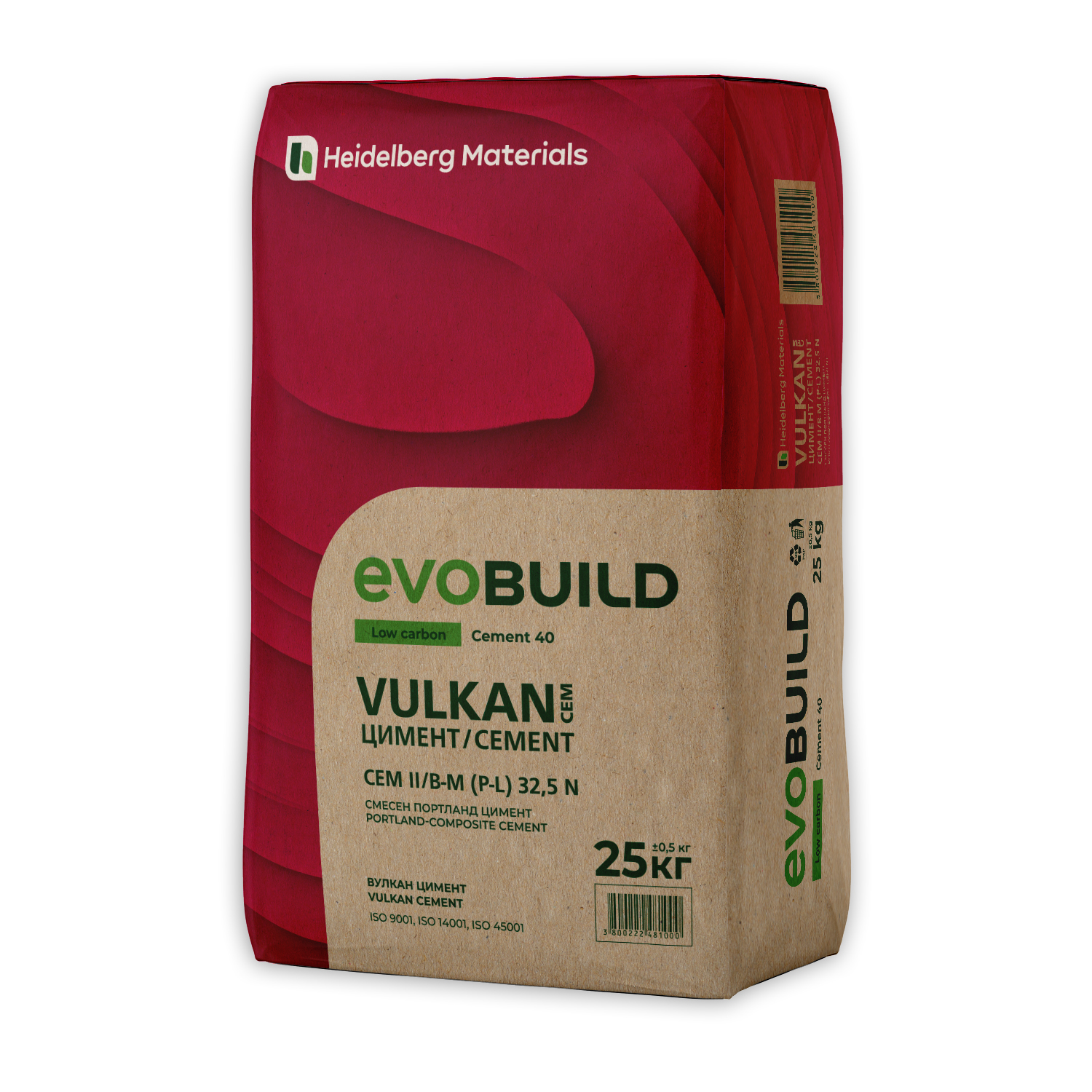 The specified product is a type of cement conforming to the composition of Portland Mixed Cement CEM II/B-M (P-L) 32.5 N. It is manufactured by Heidelberg Materials Bulgaria at the VULKAN plant.
