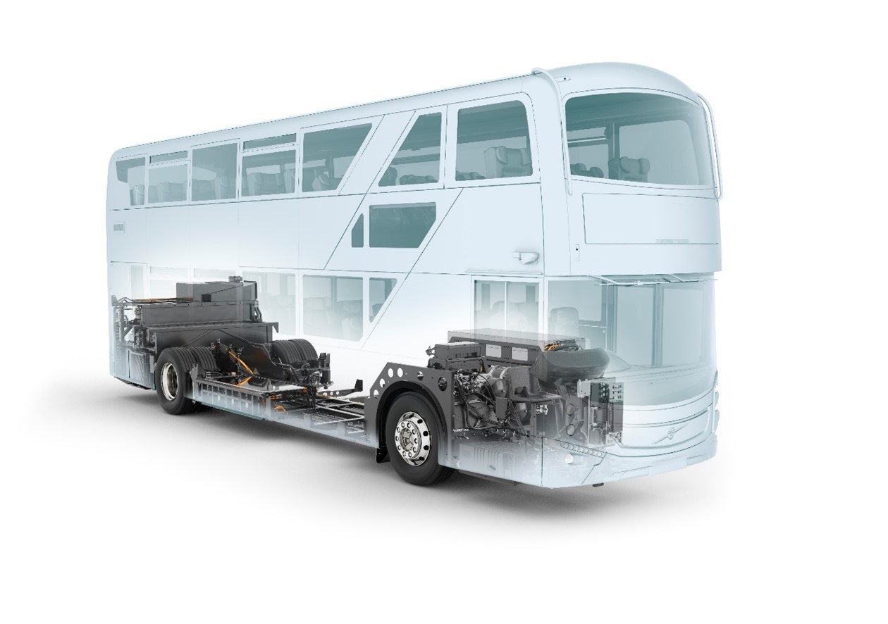 The Volvo BZL DD Electric, 4x2, is a 10,6 m long double deck urban bus with a capacity of up to 79 passengers depending on the seating layout. It is powered by a single electric motor and features a modular energy storage system and multiple charging interfaces.
