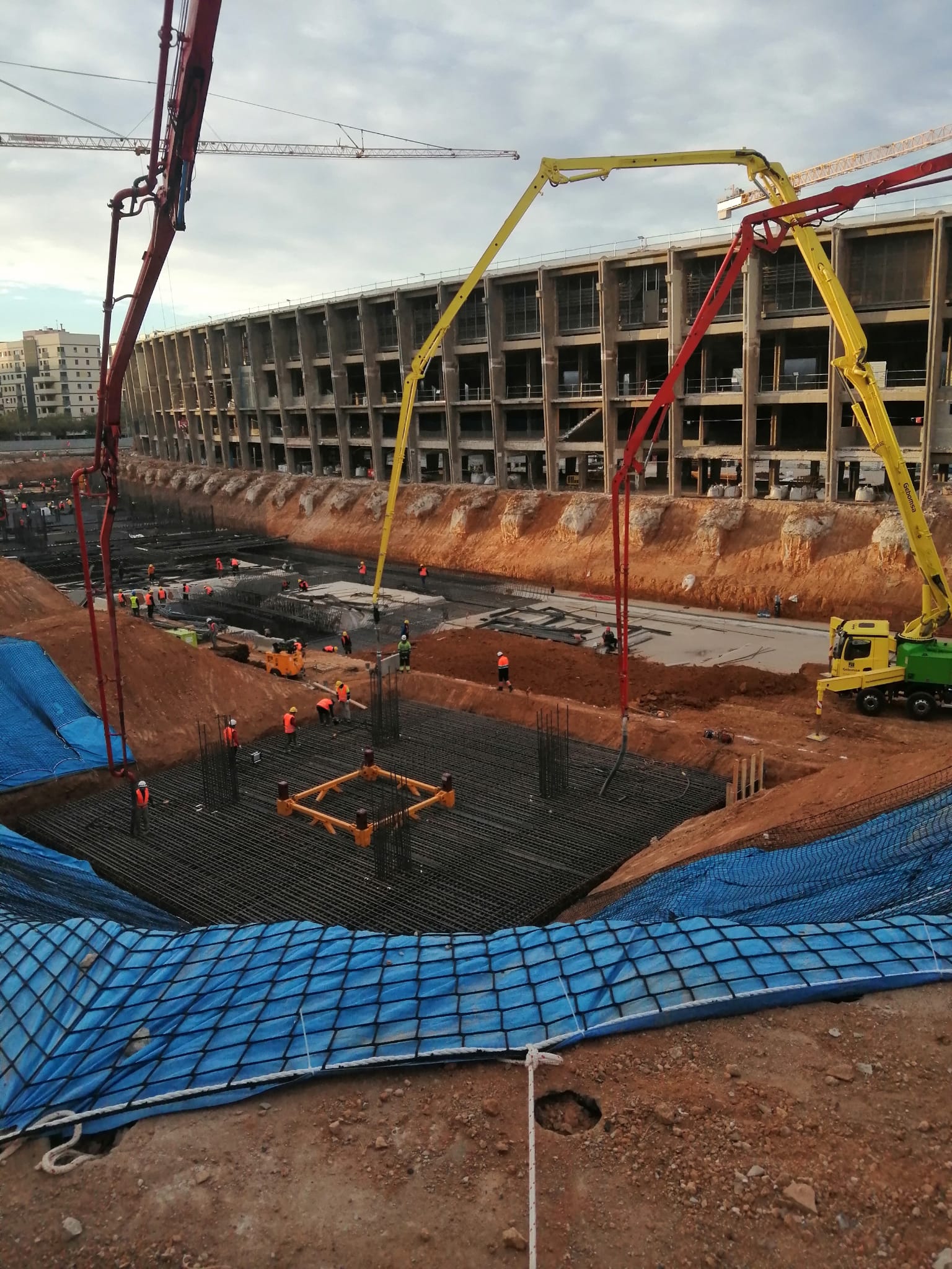 The product is supplied to the site by concrete mixer trucks.