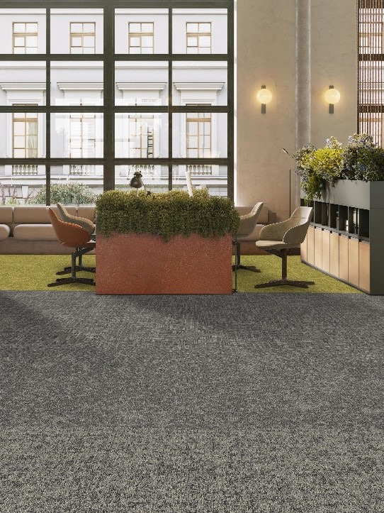 50cm x 50cm tiles on a BioBase® backing, using 'EqoBalance recycled bio-circular solution dyed nylon yarn’