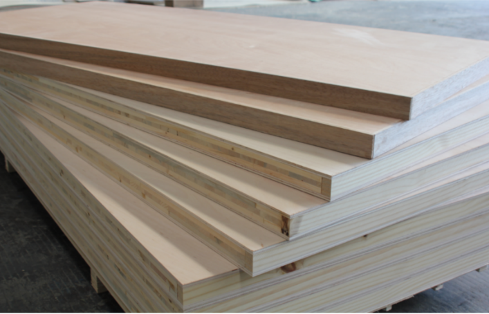 Sainty fire door blank products comprise a three-layer core (three layers of spruce/pine wood or two layers of spruce/pine wood plus one layer poplar core veneer) faced with exterior grade hardwood plywood.