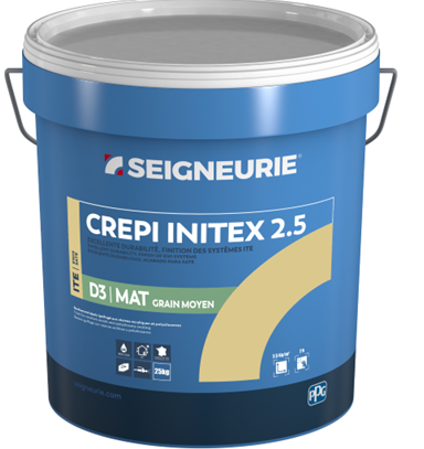 CREPI INITEX 2.5 is an Acrylic-siloxane plaster for outdoor surfaces, in 1.5 mm particle sizes, water repellence, , and float-finished. . Suitable for external façades, thermal insulation systems, applicable to new or old civil plaster and painted surfaces,