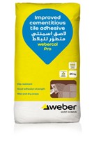 Webercol pro is a ready-mix cement-based tile adhesive modified with redispersible polymer for internal walls and floors as well as external floors. It is a latex-Portland cement mortar as per ANSI A118.4.