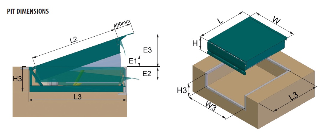 - Compact and robust lip made of 13/15 mm thick steel tear plate. The lip is hinged and its end is milled, allowing it to fit against the lorry perfectly and smoothing the lorry’s passage.