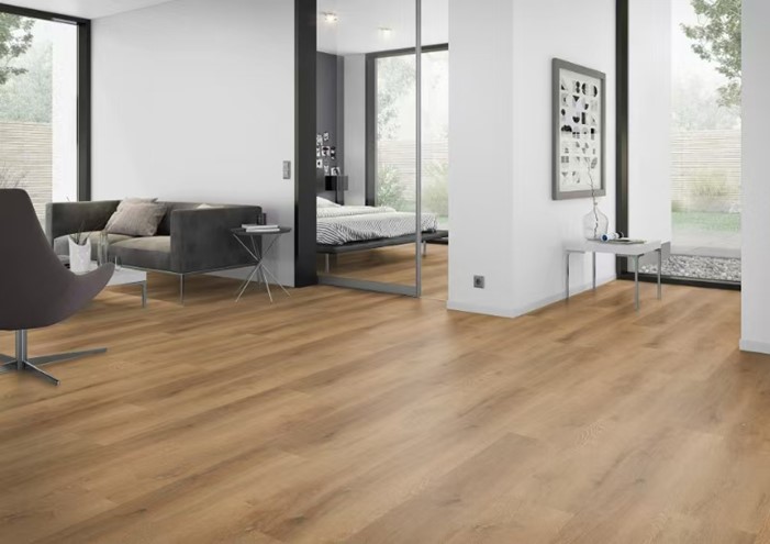 LVT FLOOR is made primarily from polyvinyl chloride (PVC), calcium carbonate (limestone), plasticizers, additives (such as pigments, stabilizers, etc.). It is composed of one clear PVC embossed wear layer with a final UV coating, printing film layer for décor, substrate layer for structural strength and stability. The product is waterproof, easy to install and maintain.