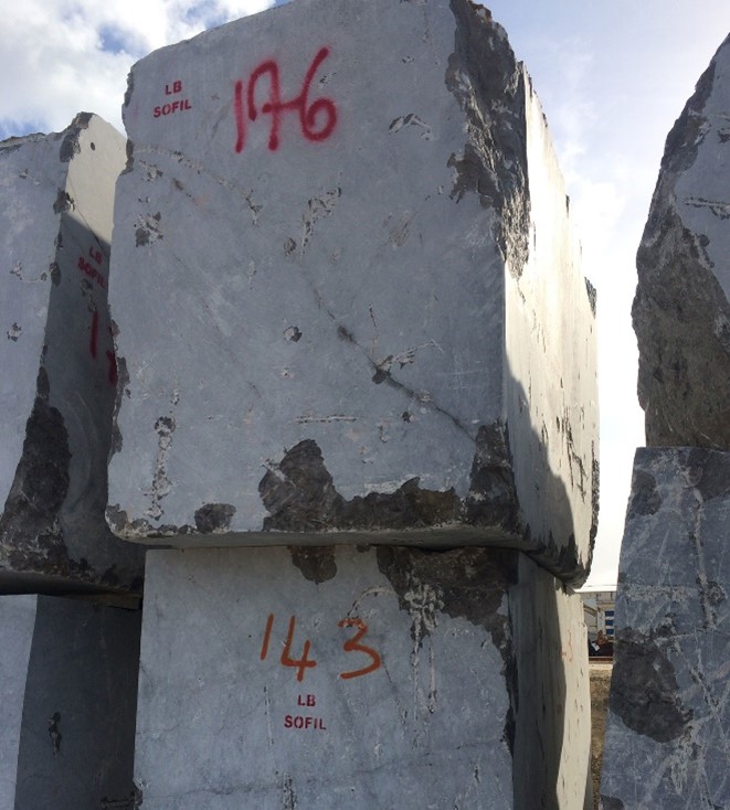 For the EPD declaration, the declared unit of matter and energy flows was referred to as: "1 m² of Billiemi "Bottarga grey" marble slab from the Bordonaro quarry, 2 cm thick, sandblasted or polished, produced by SO.F.I.L. srl."