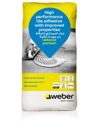Webercol premium is a high performance cement-based polymer modified adhesive for internal and external use. It can be used in a damp environment and is water resistant. Webercol premium exceeds standard requirements EN12004 and is classified as C2TES1.