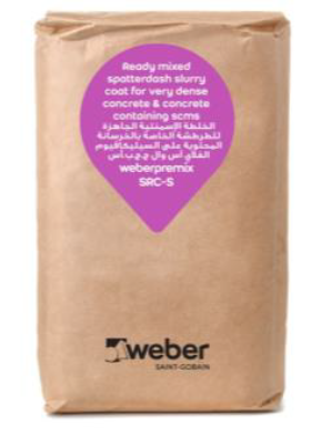 Weberpremix SRC-S is a ready mixed mortar based on mineral bonding agent used for preparing surfaces before the rendering. It improves the adhesion of the new plaster, cement or gypsum based. It is applied on smooth very dense concrete and concrete containing SCMs (GGBS, SilIca fume, Fly ash, Metakaolin…).