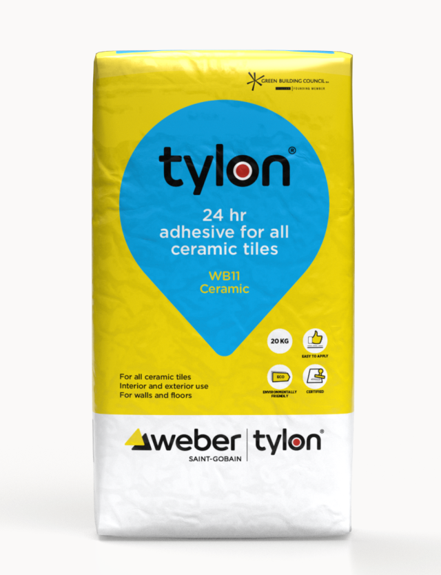 Weber WB11 is a grey general-purpose cement‑based adhesive for fixing light weight or soft baked ceramic wall and floor tiles in interior and external installations. This adhesive has an 8‑hour pot life and designed for easy application.
