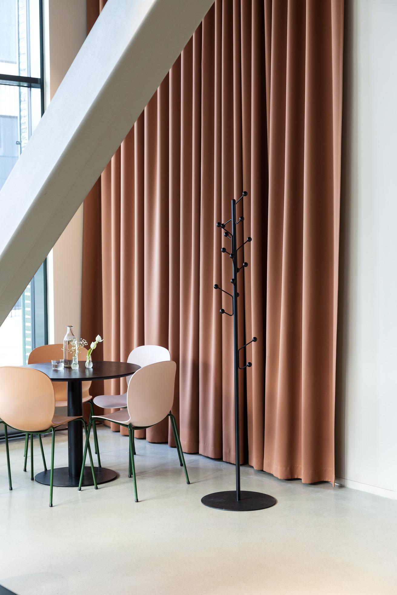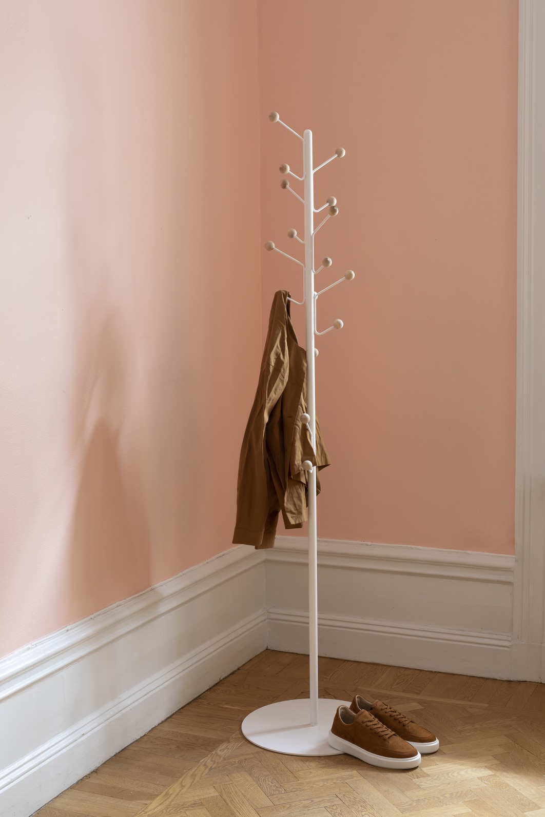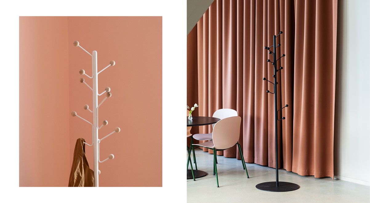 Bill Floor, Coat stand is both practical and pretty to look at. Made from a steel plate and steel pipe, with 16 hanger buds you are able to hang a lot in pretty much no space at all. Bill comes in several colours and with either birch- or stained ash knobs. Designed by Louise Hederström
