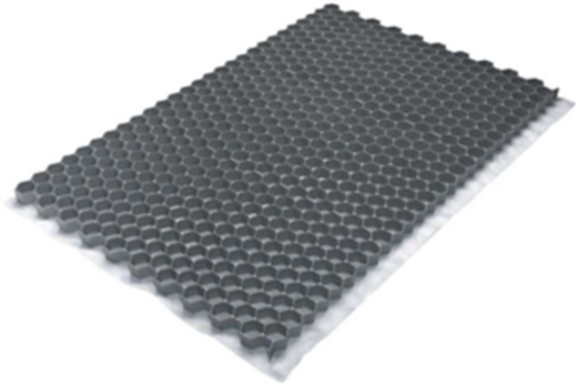 Plastic tiles (honeycomb structured) with geotextile to stabilize the parkings, driveways and pedestrian areas with gravel and to infiltrate rainwater
