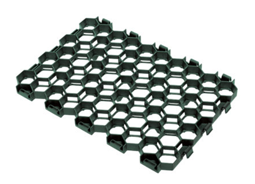 Plastic tiles (honeycomb structured) to stabilize the parkings, driveways and pedestrian areas with grass, soil or mulch and to infiltrate rainwater
