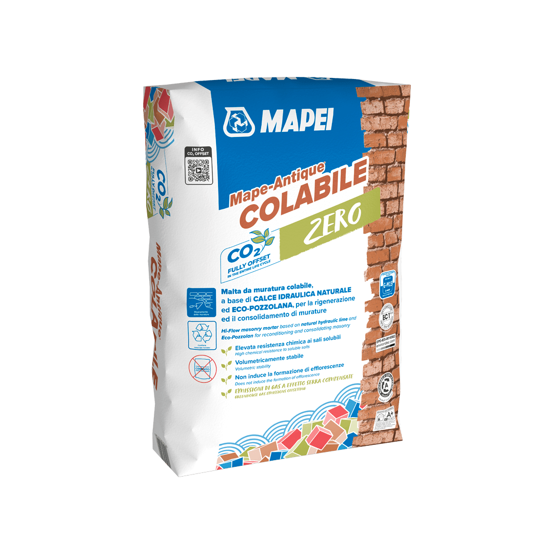 Mape-Antique Colabile is a salt-resistant, hi-flow natural hydraulic lime and ECO-POZZOLAN-based masonry mortar for reconditioning and consolidating masonry.