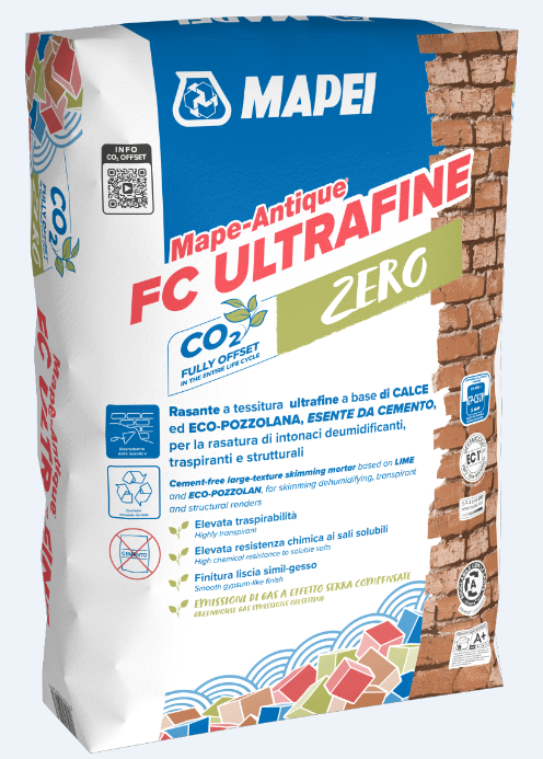 Mape-Antique FC Ultrafine is a salt-resistant, ultra fine-grained lime and ECO-POZZOLAN cement-free, breathable skimming mortar for a smooth finish on render.