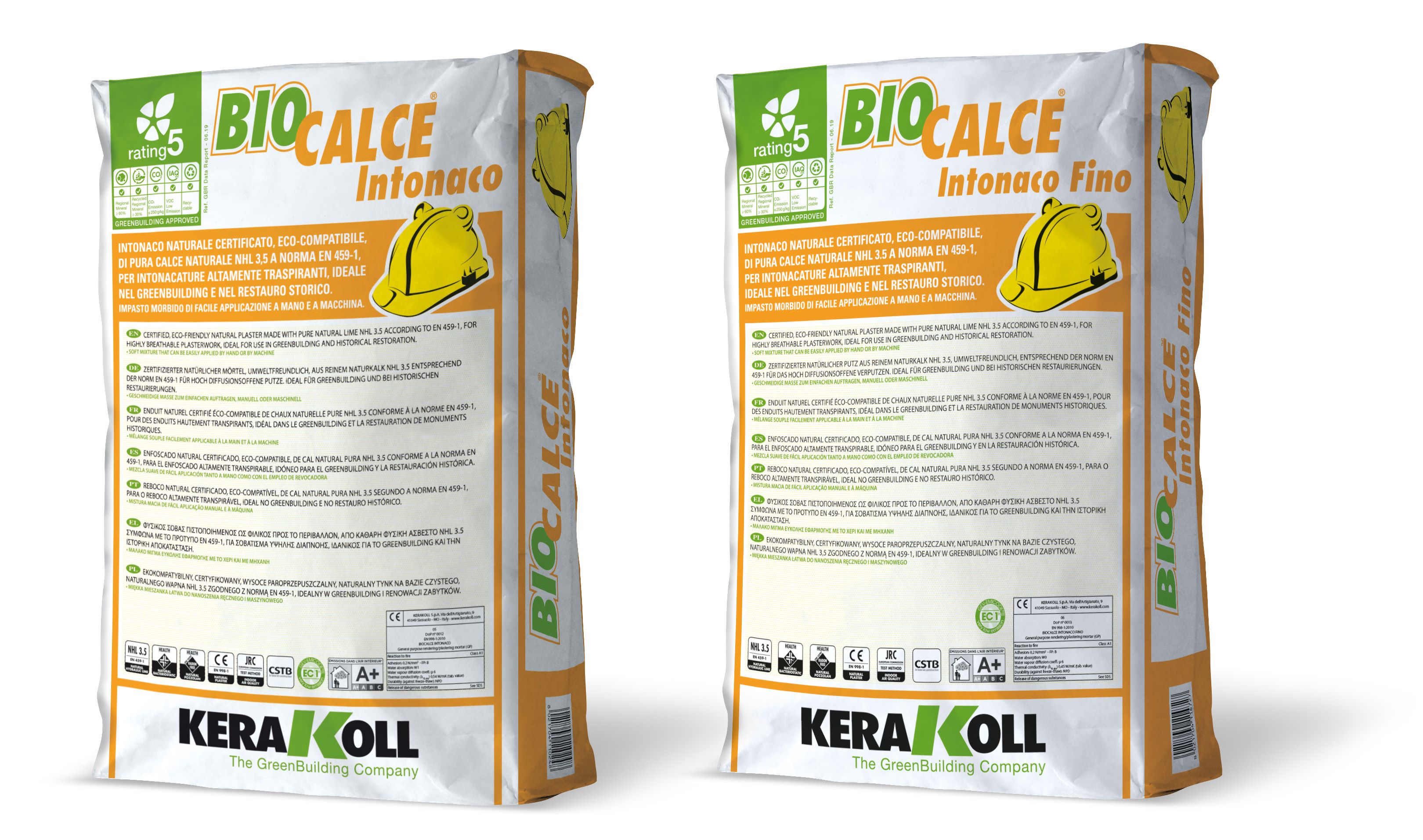Biocalce Intonaco and Biocalce Intonaco Fino are certified natural plaster of pure natural lime NHL 3.5 in accordance with EN 459-1, for highly breathable plastering.