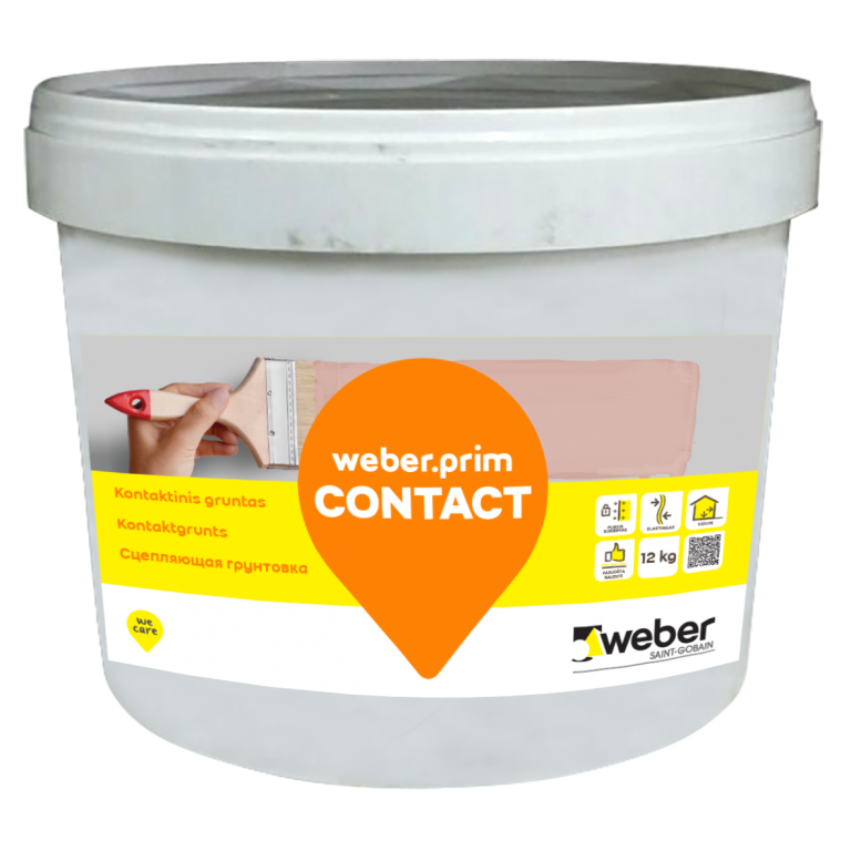 weber.prim CONTACT is a special synthetic dispersion with minerals fillers contact primer used for dense, smooth and low absorbing mineral bases, such as monolithic concrete, concrete slabs and other surface elements for priming before plastering with cement and plaster plasters. It is also used to prime the walls before tiling gluing when the base is an old tile coating.