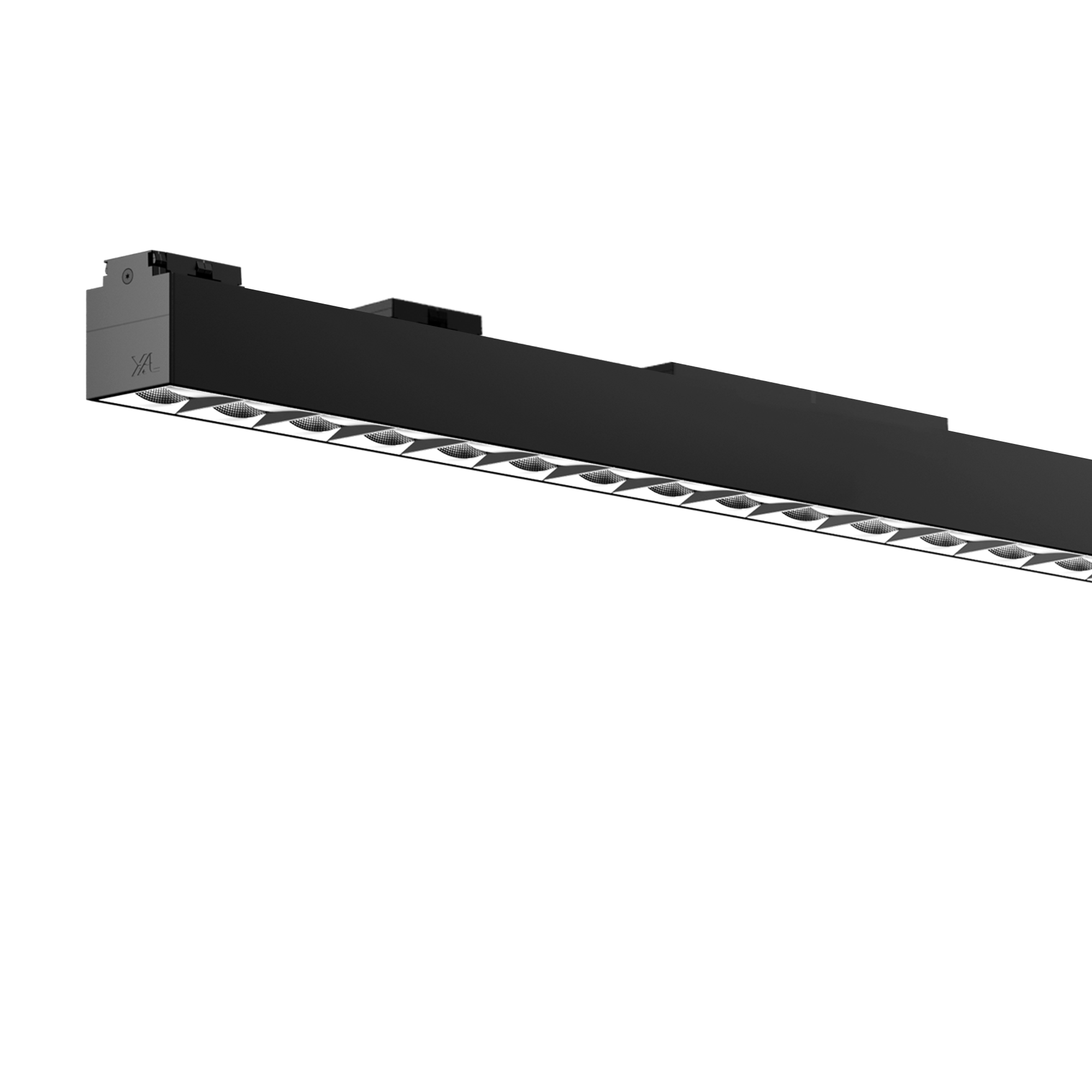 Linear light inset made of aluminium; light inset can be installed and moved without tools by means of magnetic holders+locking; surface anodised; flush with profile system; equipped with 24 specially computed OFFICE light elements; high gloss reflector with faceted design; precise radia-tion characteristic with symmetrical light distribution; energy-efficient high power LEDs with very good colour rendering; hot plug protection