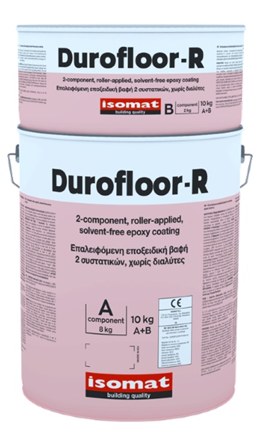 DUROFLOOR-R is a two-component, colored epoxy system, offering high strength and abrasion resistance. It is resistant to organic and inorganic acids, alkalis, petroleum products, waste, water, sea water and weather conditions. It is also resistant to temperatures from -30°C to +100°C in dry loading and up to +60°C in wet loading. Certified according to EN 1504-2 and classified as coating for surface protection of concrete.