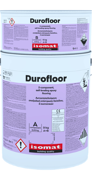 DUROFLOOR is a two-component, colored, self leveling epoxy system offering high strength and abrasion resistance. It shows resistance to organic and inorganic acids, alkalis, petroleum products, waste, water, seawater, and numerous solvents. It is resistant to temperatures ranging from -30°C to +100°C in dry loading and up to +60°C in wet loading. Certified according to EN 1504-2 and classified as coating for surface protection of concrete.