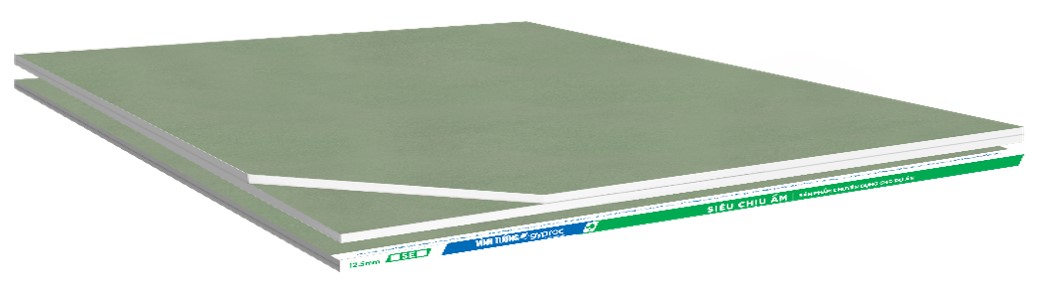 Vinh Tuong-Gyproc super moisture resistant plasterboard 12.5mm is a plasterboard with light moss green paper liners. The product has better moisture resistance than the classic gypsum board thanks to a special moisture-resistant core, suitable for applications in areas with high and intermittent humidity.
