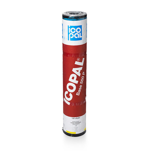 Icopal Base 550 P is used as a lower layer in a two-layer waterproofing system from BMI Icopal, made for roofs with particularly high demands on the waterproofing. The system consists of an upper layer (Top) and a lower layer (Base), both based on SBS-modified bitumen. SBS increases the elasticity of the waterproofing layer and provides increased joint strength and service life. Two separate waterproofing layers provide a good protection against leakage.