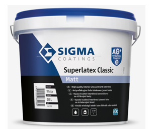Superlatex Classic is a new generation water-based, latex, acrylic-composite paint for walls and ceilings. It is intended for painting indoor walls and ceilings made of synthetic, cement-lime plasters, concrete surfaces, gypsum plasters, plasterboards and surfaces painted with emulsion paints. The use of high-grade dispersion allows the walls to ‘breathe’ properly, so the paint can be used in both dry and wet rooms (kitchens, bathrooms, laundry rooms, etc.) without direct contact with water. The product is also recommended for coating the Sigmascan glass fibre wallpapers. Particularly recommended for painting in public facilities, including healthcare institutions, such as hospitals, clinics, medical offices, operating rooms, kindergartens, schools, as well as premises in the hotel and catering industry. The addition of silver ions (Ag +) protects the coating against bacteria, algae and mould.
