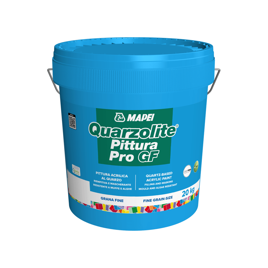 Quarzolite Pittura PRO GF is a filling and masking quartz acrylic paint, mould, and algae resistant, for interior and exterior use.