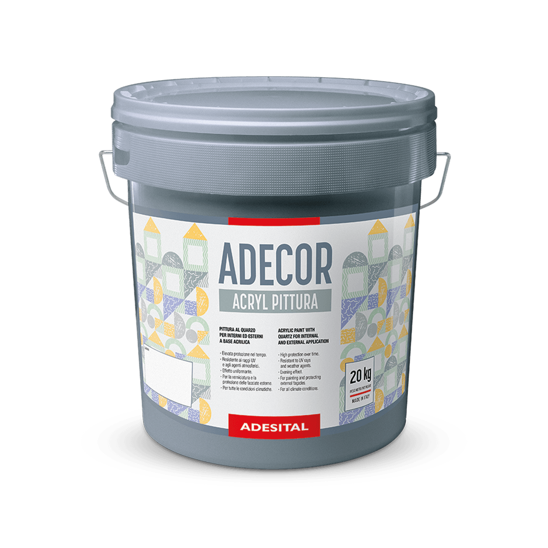 Adecor Acryl Pittura is an acrylic paint in water dispersion with quartz micro-granules for indoor and outdoor applications. Evening and with high protection.