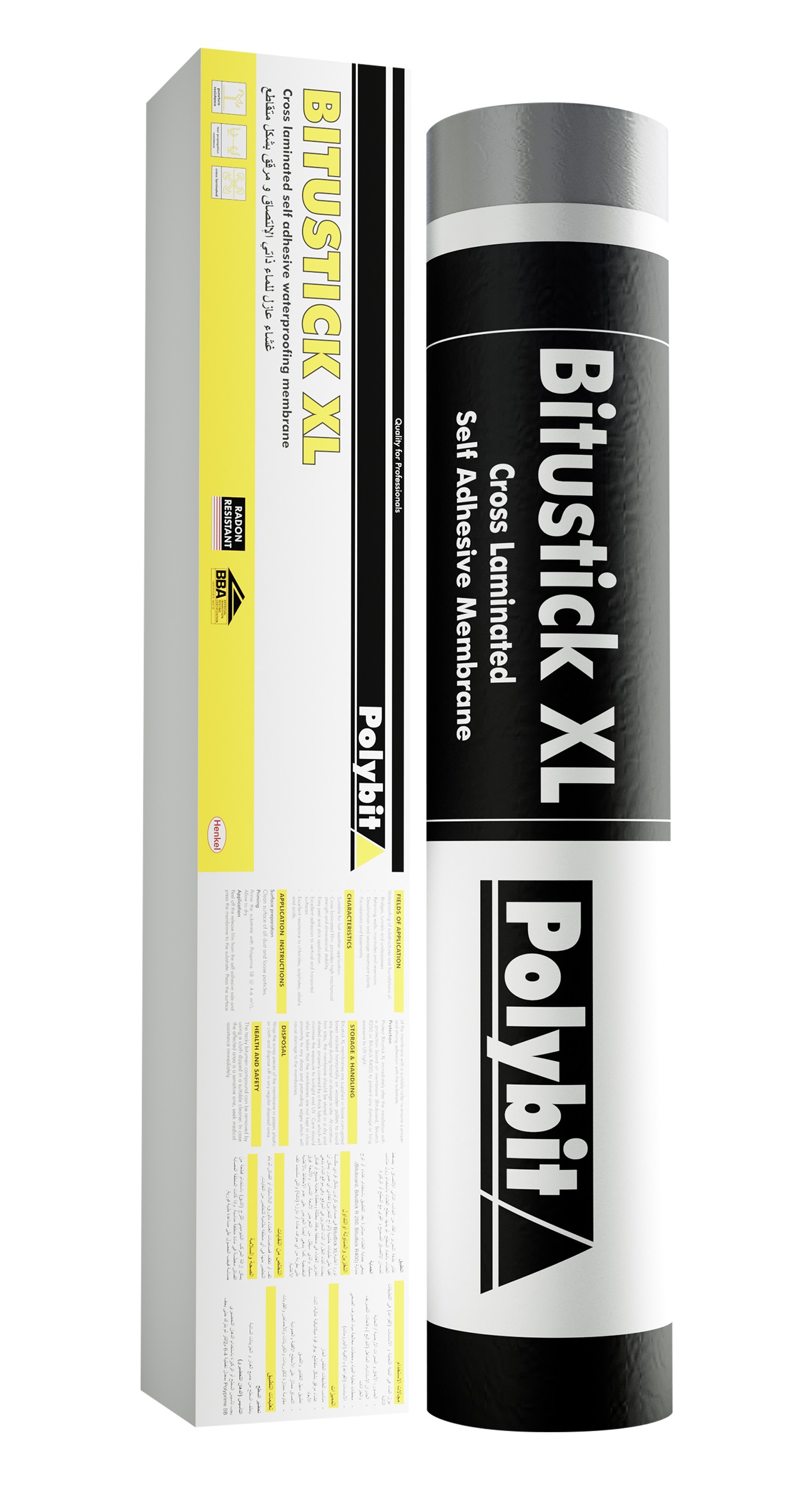 Bitustick XL – UAE is a self adhesive waterproofing membrane based on a tropical grade of polymer modified bitumen. The bitumen compound is laminated onto an impervious, nonperforated, cross laminated HDPE film.