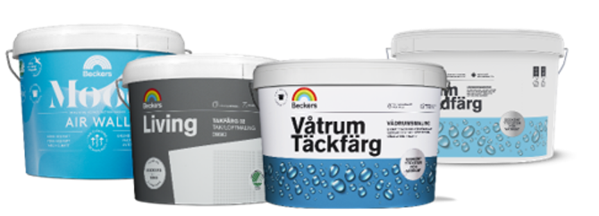 PPG Beckers Living Takfärg 02 and PPG Beckers Mood Air Wall and PPG Beckers Våtrum Täckfärg and PPG Beckers Våtrum Grundfärg
