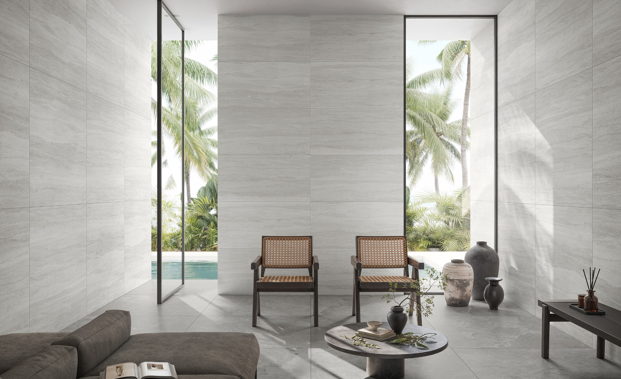 Porcelain tiles contains inorganic materials such as clay, kaolin, calcite and feldspar, but they may also include other raw materials. VitrA porcelain tiles comes in glazed and non-glazed porcelain tiles with non-glazed matt. glossy or anti-slip surface options, in the dimensions of 20x20cm, 30x30cm, 40x40cm, 30x60cm, 60x60cm, 45x45 cm, 45x90 cm, 40x80 cm, 80x80 cm, 20x120 cm, 30x120 cm and 60x120cm, allow the designer to meet the requirements of projects, thanks to the superior technical characteristics, as well as colours and patterns. Porcelain tiles are fully vitrified ceramic tiles with water absorption of less than 0.5%.
