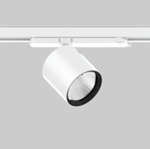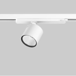 Track spotlight made of die-cast aluminum; surface powder-coated; spotlight head rotatable 355° and pivotable 90°; converter integrated into the plastic adapter; high-quality reflector with spherical facet optics; precise light distribution with various beam angles; tool-free installation or replacement; optical attachments available as accessories; optical attachments can be combined; equipped with COB (Chip on Board) technology for maximum efficiency; versions available with > 120 lm/W; no formation of multiple shadows; energy-efficient LEDs with excellent color rendering; adapter for tool-free insertion or adjustment in various 3-phase track systems.